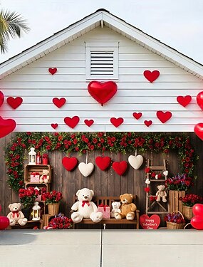 Cubierta de puerta de garaje con impresión plana 2D para el día de San Valentín, osos marrones y blancos con globos de corazón, rosas, cajas de regalo, perfecta para la decoración navideña, ideal para