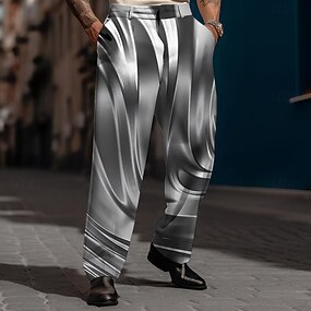 Hombre Graphic pantalones de traje Media cintura Informal de negocios Formal Uso Diario Bolsillo Pantalones rectos Verano Primavera Otoño Impresión 3D Gris