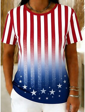 día de la independencia americana Mujer Camiseta Camiseta superior Estampado Graphic A Rayas Elegante Clásico Casual Manga Corta Cuello Barco Tops regulares Diario Noche Fin de semana Azul Piscina