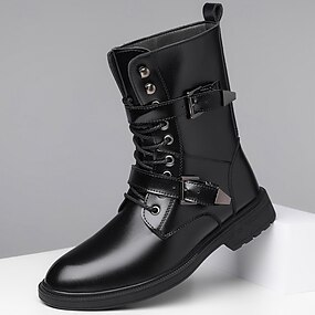 Hombre Botas Botas de Combate Zapatos de Paseo Británico Diario PU Cómodo Mitad de Gemelo Cordones Negro Otoño Invierno