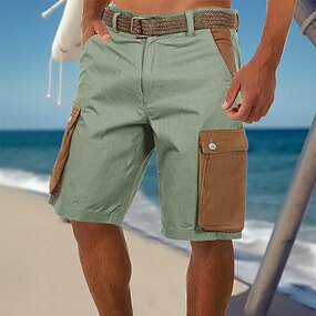 Hombre Pantalón corto Pantalones cortos de lino Pantalones cortos de verano Retazos Bolsillo Bloque de color Comodidad Transpirable Corto Casual Diario Festivos Moda Design Verde Trébol Caqui