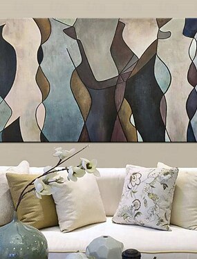 Pintura al óleo hecha a mano sobre lienzo, decoración de pared, textura abstracta, figuras con cuchillo, rostros, para el hogar, fondo de sofá, decoración de entrada, marco tensado, cuadro para colgar