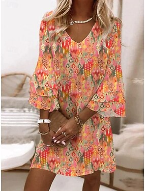 Mujer Mini vestido Vestido de verano Vestido informal Vestido de una línea Vacaciones Casual Boho Fiesta Ajuste regular Floral Graphic Abstracto Manga 3/4 Escote en Pico Magenta Azul Tinta Naranja