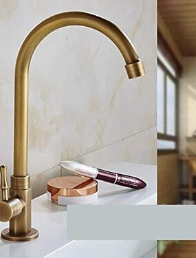 Grifo de fregadero de cocina tradicional solo agua fría, grifo de cocina de un solo mango de latón retro caño estándar galvanizado dorado