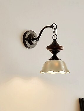 Lightinthebox Aplique de pared de cerámica, lámpara de pared pequeña, lámpara de pared de madera de nogal rústica, lámpara de cabecera vintage, accesorio de iluminación interior para dormitorio, sala