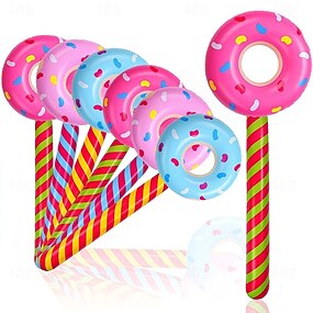 6 piruletas inflables de colores aleatorios, caramelos inflables con forma de donut, decoraciones para fiestas de cumpleaños, juguetes novedosos