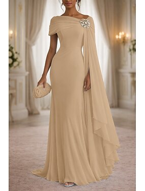 Corte A Funda Columna Vestidos Hasta el Suelo Vestido Invitada Boda Vestido formal Vestido de noche Vestido de Madrina Media Manga Escote Barco Elegante Sencillo Minimalista Formal Gasa Jacquard