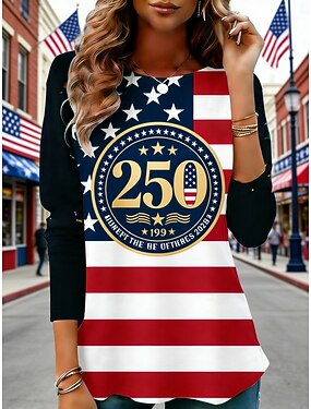 día de la independencia americana Mujer Camiseta Camiseta superior Estampado Graphic Bandera estadounidense Moda Elegante Clásico Manga Larga Escote Redondo Tops regulares Diario Fin de semana Ropa