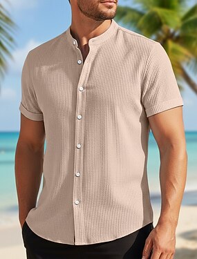 Hombre Camisa Camisa de cuello chino Camisa de cuello mandarín Camisa de verano Camisa casual Camisa de playa Negro Blanco Azul Piscina Color Caquí Manga Corta Plano Collar mandarín Vacaciones