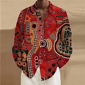 Hombre Graphic Tribal Henley Shirt Manga Larga Impresión 3D Moda Design Cómodo Diario Exterior Primavera & Otoño Azul Marino Marrón Verde Trébol Gris Henley Camiseta Henley