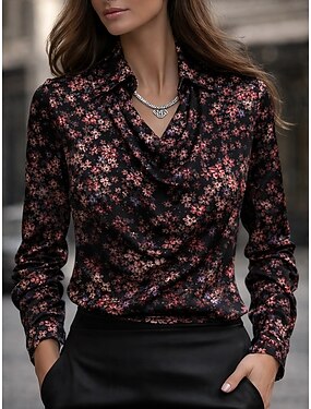 Mujer Camisa Estampado En Cortina Floral Graphic Elegante Casual Manga Larga Cuello vuelto holgado Tops regulares Diario Trabajo Festivos Morado Primavera Otoño