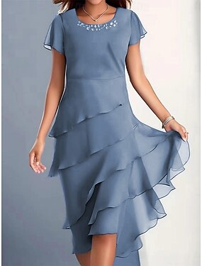 Vestido de fiesta hasta el tobillo tipo A vestido de cóctel vestido para invitadas de boda vestido para la madre de la novia con mangas cortas cuello redondo elegante formal con apliques