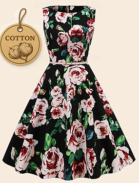 Retro Antiguo 1950s Hasta la Rodilla Vestido swing Vestido acampanado Sin Mangas Estampado Floral Vestido de Gala Escote Redondo Disfraz Mujer Mascarada Fiesta Fiesta de Té Casual Diario Adulto