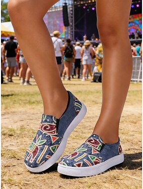 Zapatillas de lona con estampado tribal sin cordones para mujer: zapatos casuales de estilo urbano cómodos para caminar, ir de compras y celebrar festivales.