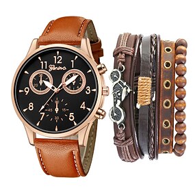 Reloj Set Hombre Moda Casual Dos Ojos Cinturón Reloj de Cuarzo Pulsera Punk Bicicleta 5pcs/set