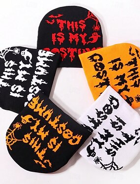 Hombre Unisexo Sombrero de Beanie Sombreros de invierno Gorros 骷髅头毛线帽 Sombrero tejido Negro / naranja Blanco Fibra de acrílico Jacquard De Punto Acogedor Víspera de Todos los Santos Ropa Cotidiana