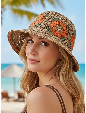 Sombrero de sol bohemio tejido para mujer, multicolor, plegable, perfecto para vacaciones en la playa y el resort, uso diario informal.