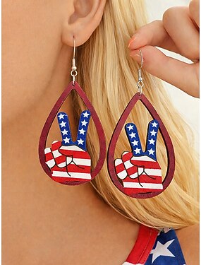 Pendientes Colgantes en forma de Gota de Bandera de EE.UU. de Madera para Mujeres del 250 Aniversario de los Estados Unidos Joyería Patriótica Ligera Múltiples Estilos Disponibles Estilo Boho Casual