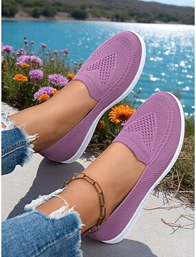 Zapatillas Flyknit sin cordones para mujer: zapatos planos informales, ligeros y transpirables para caminar, ir de compras y usar en vacaciones.