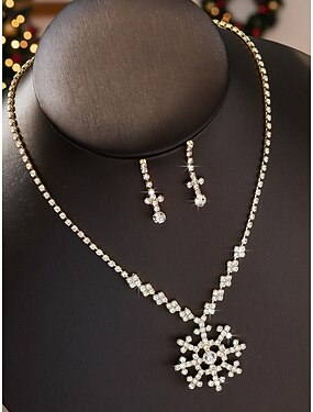 Conjunto de joyas de cristal con copos de nieve para mujer, collar y pendientes de diamantes de imitación brillantes en tono dorado, elegante accesorio de invierno para fiestas navideñas y bodas.