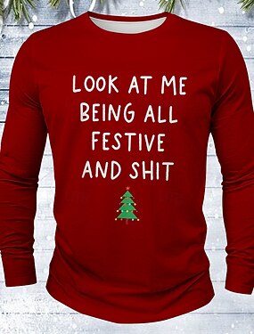 Navidad Hombre Árbol de Navidad Argot divertido Camiseta Manga Larga Camiseta Impresión 3D Cuello Barco Camisa Vacaciones Design Calle Casual Negro Blanco Rojo Verano Primavera Otoño Ropa S M L XL