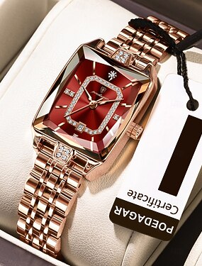 Reloj de mujer para el día de la madre, esfera cuadrada de oro rosa con cristales brillantes, reloj de pulsera de cuarzo con correa de acero inoxidable resistente al agua, elegante reloj de vestir,