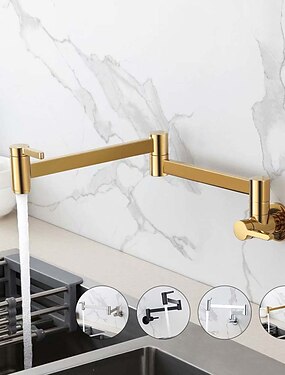 Grifo de cocina, grifo de cocina, llenador de ollas montado en la pared, grifo de cocina plegable de latón