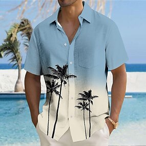 Hombre Camiseta superior Camiseta de lino Mangas cortas Escote en Pico Verano Plano Moda Design Básico Suave Vacaciones Casual Diario Playa Bleu Ciel Blanco Rosa Camiseta superior para hombre