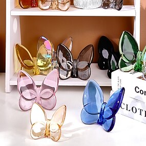 Figura de mariposa de cristal de colores, adorno de vidrio iridiscente para tocador o decoración de mesa, escultura de mariposa transparente para fiestas, celebraciones o exhibición en el hogar.