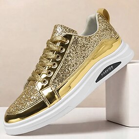 Zapatillas deportivas con purpurina dorada para hombre, zapatos casuales de moda para fiestas urbanas y eventos festivos.