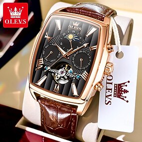 Reloj mecánico OLEVS para hombres reloj de pulsera casual de moda automático autoviento fase lunar calendario luminoso reloj de cuero