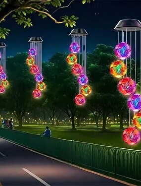 Lámpara solar colgante de exterior con forma de flor bordada rosa que cambia de color, 1 unidad.