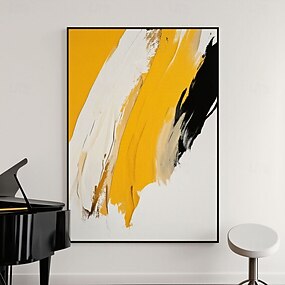 Gran lienzo abstracto pintado a mano en amarillo, blanco y negro. Pintura acrílica al óleo hecha a mano para decoración moderna de salas de estar. Mural de pared contemporáneo. Cuadro decorativo.