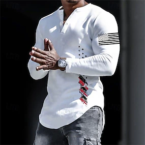 4 de julio de 2026 250º Día de los Caídos Camiseta de Manga Larga Henley Gráfica 3D de la Bandera Nacional para Hombre Casual Diario