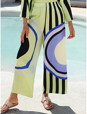 Mujer Pantalones Holgado Corte Recto Longitud total Satén Estampado Contemporáneo moderno Estilo playero Vacaciones Ropa Cotidiana Multi Color Primavera verano XS S M