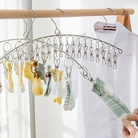 Percha de secado de ropa de acero inoxidable, a prueba de viento, pinzas para estante, colgador de tendedero para ropa interior, soporte para calcetines