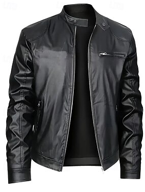 Hombre Chaqueta de cuero sintético Chaqueta de motociclista Chaqueta de moto Vacaciones Diario Resistente al Viento Mantiene abrigado Bolsillo Otoño Invierno Plano Moda Clásico Escote Chino Regular
