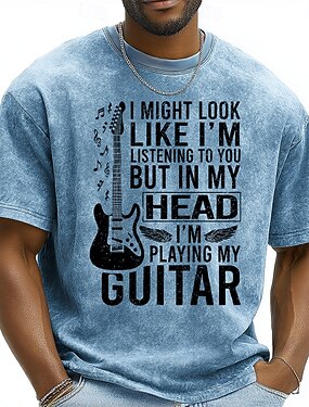 Camiseta divertida y sarcástica de manga corta con cuello redondo y estampado de guitarra eléctrica con efecto desteñido "Estoy tocando mi guitarra en mi cabeza", ideal para guitarristas. Tallas: S,