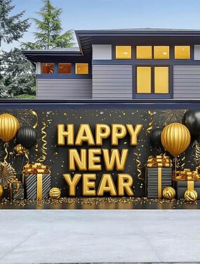 Cubierta para puerta de garaje de Año Nuevo, globos, fuegos artificiales, pancarta para exteriores, gran telón de fondo para puertas de garaje al aire libre, decoraciones de pared para el hogar