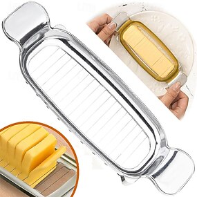 Cortador de mantequilla de aluminio y acero inoxidable, cortador de mantequilla y queso con agarre portátil para mantequilla, queso, fruta, hornear, un solo palo, fácil de limpiar