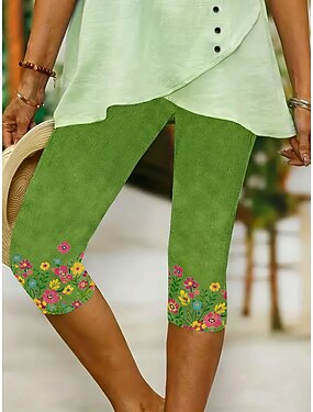 Mujer Pantalones Capri Polainas Vacaciones Elegante Confort Medio corto Alta cintura Floral Graphic Estampado Comodidad Cómodo Elástico Diario Exterior Casual Azul Piscina Violeta Amarillo Verde