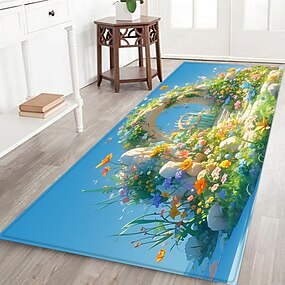 Alfombra de pasillo con estampado de flores y plantas, tela de franela estampada, decoración para el hogar, antideslizante, suave, para la entrada del baño