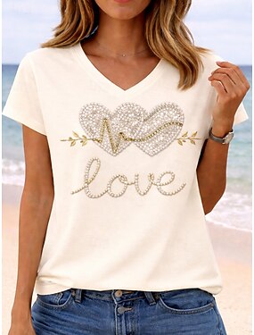 Mujer Camiseta Estampado Graphic Letra Equipo de fútbol Elegante Clásico Casual Manga Corta Escote en Pico Tops regulares Casual Diario Azul Piscina Negro Marrón claro Beige Verano Primavera