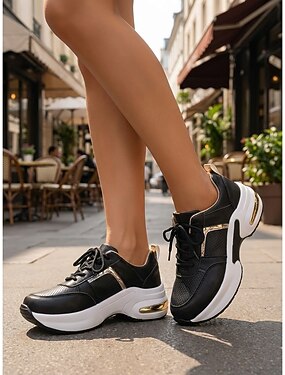 Zapatillas blancas de plataforma gruesa para mujer: zapatillas estilo "dad shoes" transpirables y ligeras con suela gruesa para caminar a diario y para looks casuales. &ropa urbana de calle