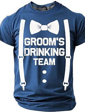 Camiseta con texto de equipo de bebida para novios, pajarita, tirantes, esmoquin, gráfico, humorístico, sarcástico, para despedidas de soltero, boda, padrinos de boda, corte regular, ropa informal