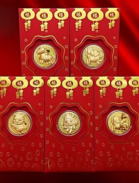 5 monedas conmemorativas del año del caballo 2026 (estilo aleatorio), 100 yuanes, sobres rojos, papel dorado, bolsas de dinero de la suerte para el Año Nuevo chino, un bien cultural.