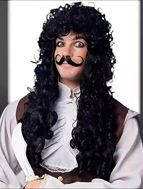 Peluca de capitán pirata para hombre, pelo largo y rizado, estilo payaso, color negro, para Halloween, estilo punk rock.