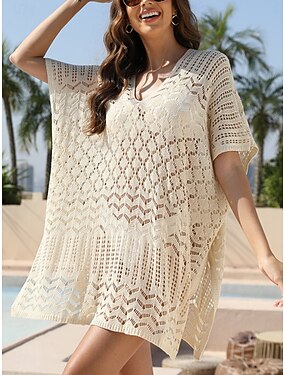 Vestido de traje de baño mujer cubrir vestido cut out tejido vacaciones playa color sólido escote en V mangas cortas