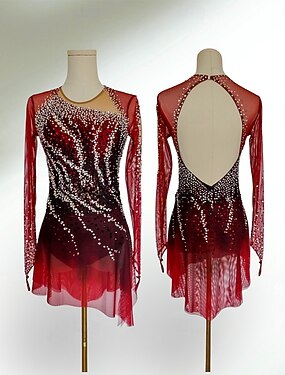 Vestido de patinaje artístico Mujer Chica Patinaje Sobre Hielo Vestidos Rojo Retazos Dedo Pulgar Licra Malla Alta elasticidad Entrenamiento Competición Ropa de Patinaje Clásico Cristal / Strass Manga