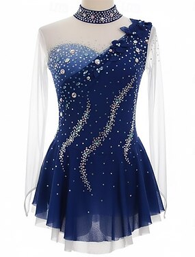 Vestido de patinaje artístico Mujer Patinaje Sobre Hielo Vestidos Azul Marino Retazos Dedo Pulgar Alta elasticidad Entrenamiento Competición Ropa de Patinaje Clásico Cristal / Strass Manga Larga